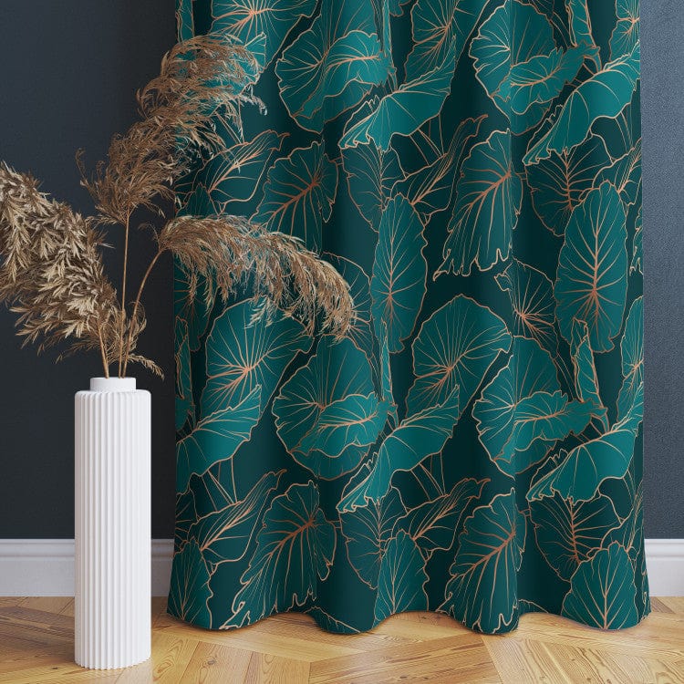 Koristeelliset verhot - Night Jungle, kasvitieteellinen sommitelma allasia lehdillä, 147162