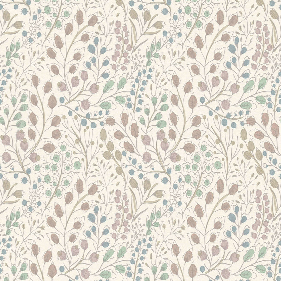Kuitutapetit kukkakuvioinen - kerma, vihreä, sininen, 1373070