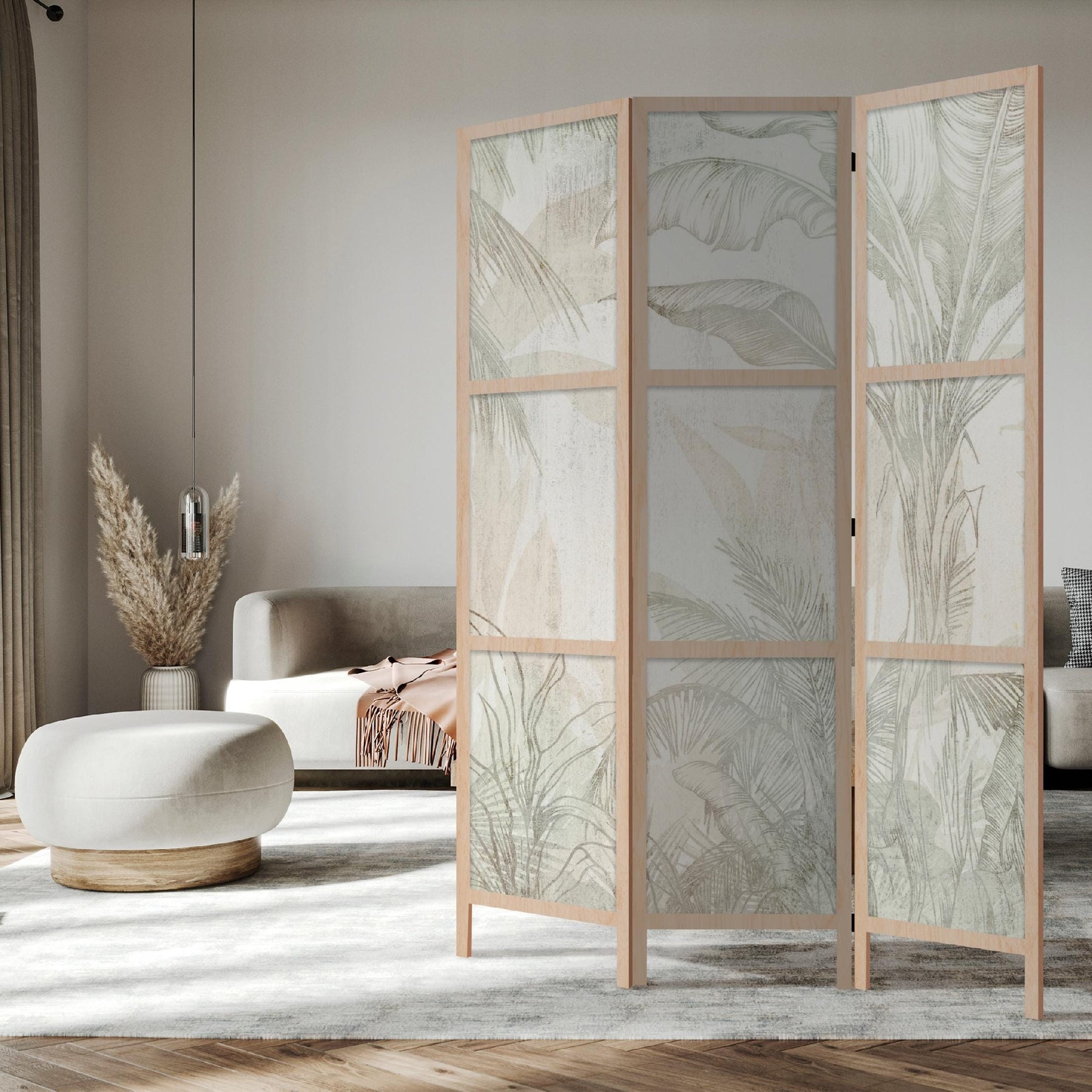 Dekoratīvs japāņu aizslietnis, vienpusējs 135x172, Tropu dārzs bēšos toņos