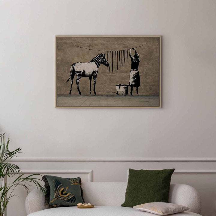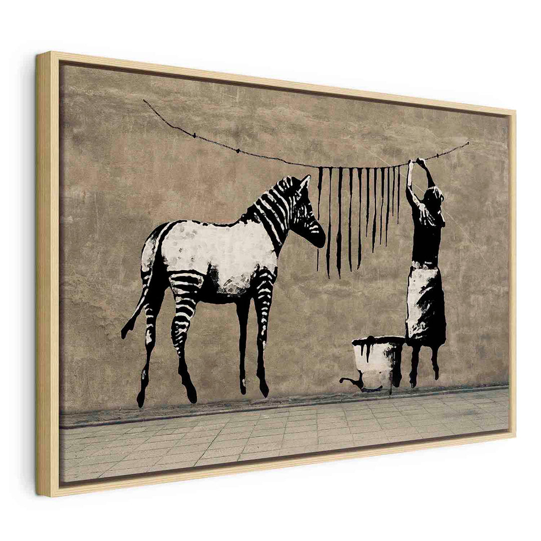 Maalaus puukehyksessä - Banksy: Seepra betonilla