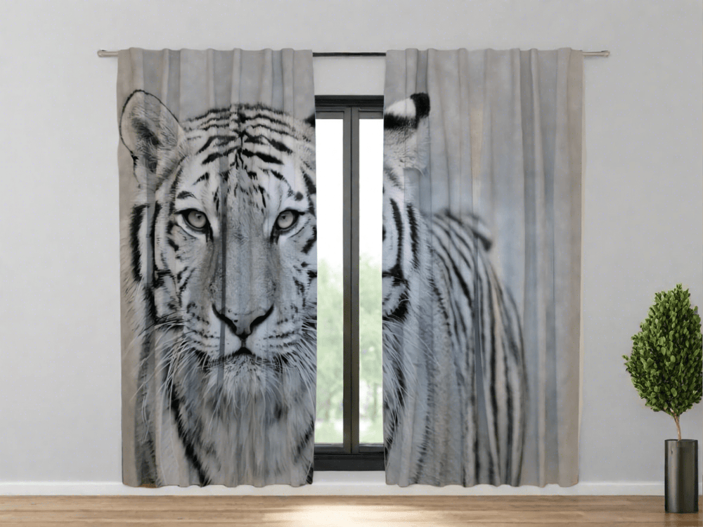 Dienas un nakts aizkari ar apdruku - Baltais tīģeris Tapetenshop.lv