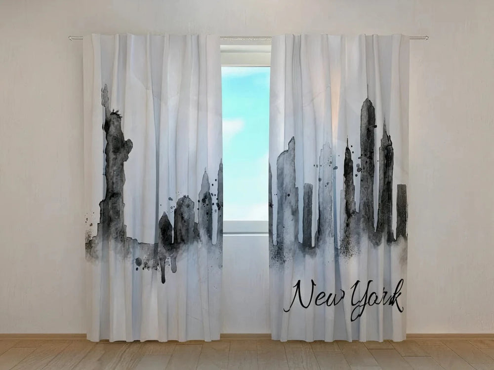 Melnbalti aizkari ar Ņujorkas siluetu - modernam interjeram Tapetenshop.lv