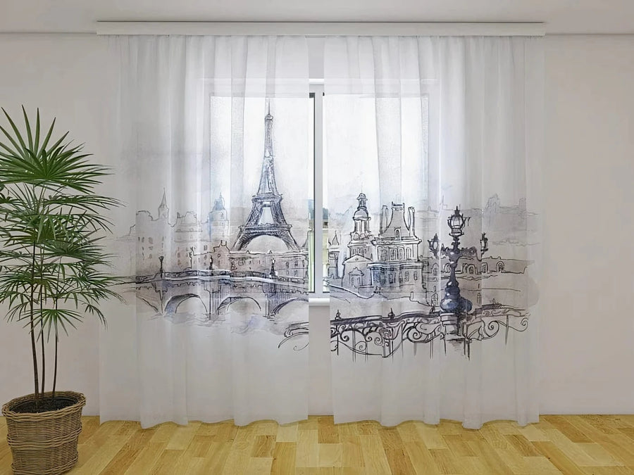 Melnbalti aizkari ar Parīzi un Eifeļa torni - Akvareļu Parīze Tapetenshop.lv