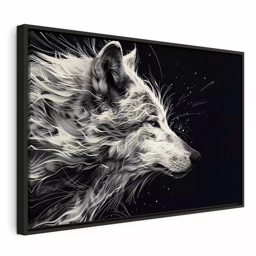 Maalaus mustassa puukehyksessä - Valkoinen susi mustalla pohjalla, 161980