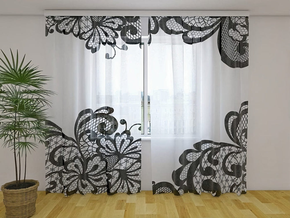 Melnbalti aizkari ar apdruku pēc individuāla pasūtījuma - Tapetenshop Tapetenshop.lv