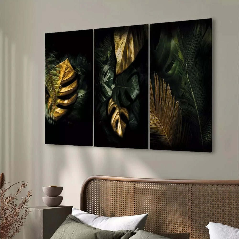 Canvas-taulut kultaisilla lehdillä - Arvokas löytö (x 3)
