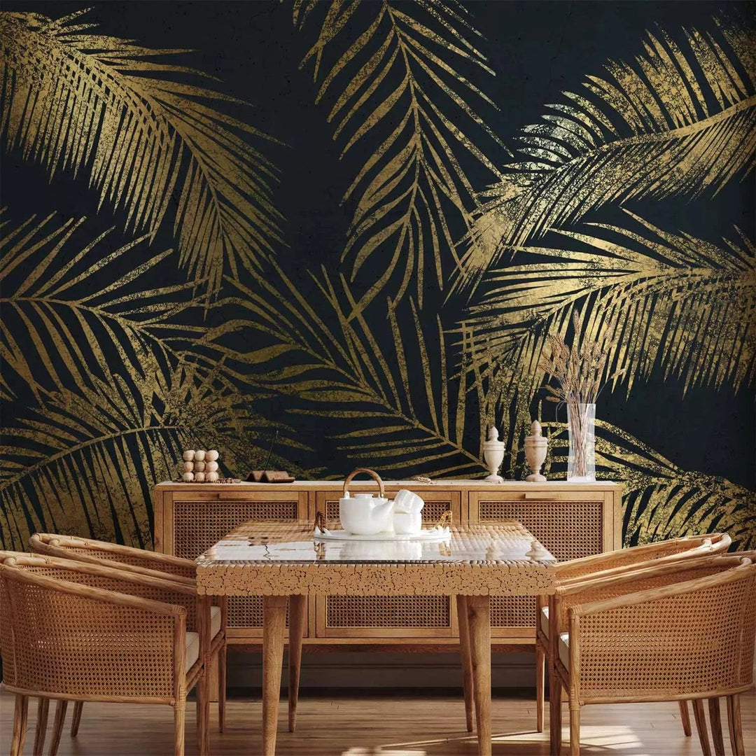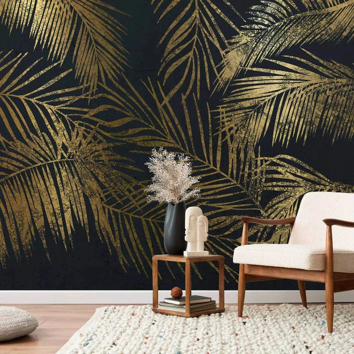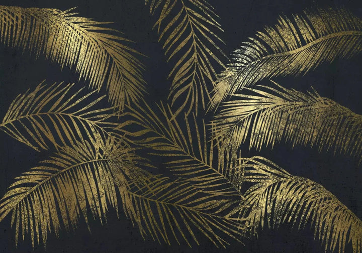 Valokuvatapetti - Kultaiset palmunlehdet mustalla taustalla - 138211
