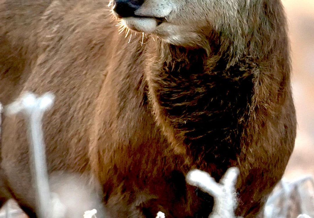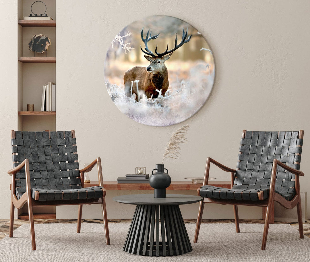 Pyöreä сanvas-taulut (Deluxe) - Peura talvimetsän taustalla, 148723