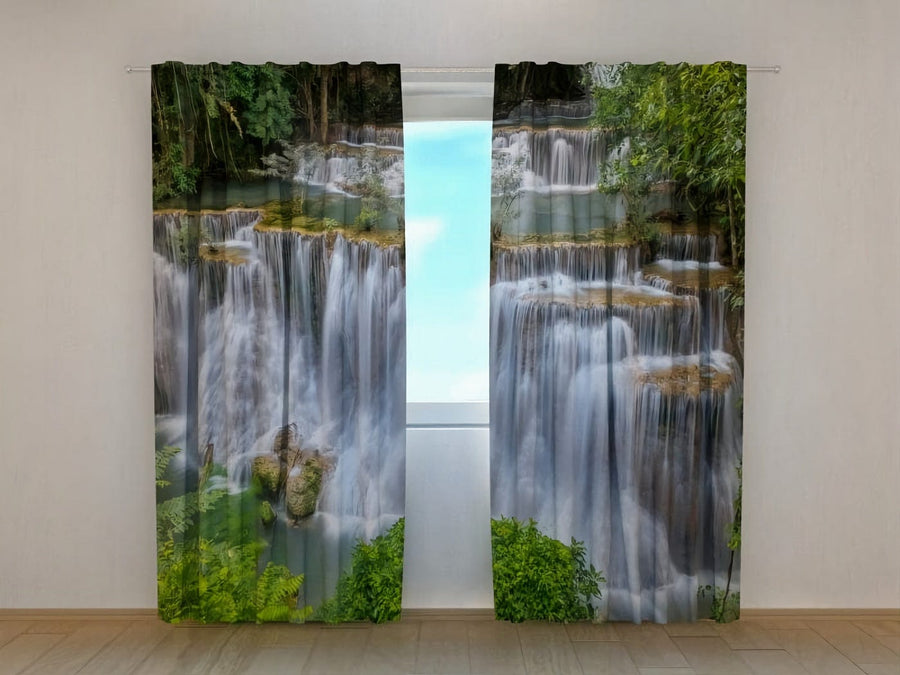 Aizkari ar skaisto Kančaburi ūdenskritumu, rada dabas motīvu mājās Tapetenshop.lv