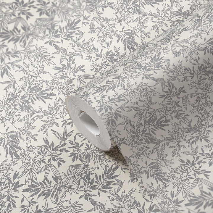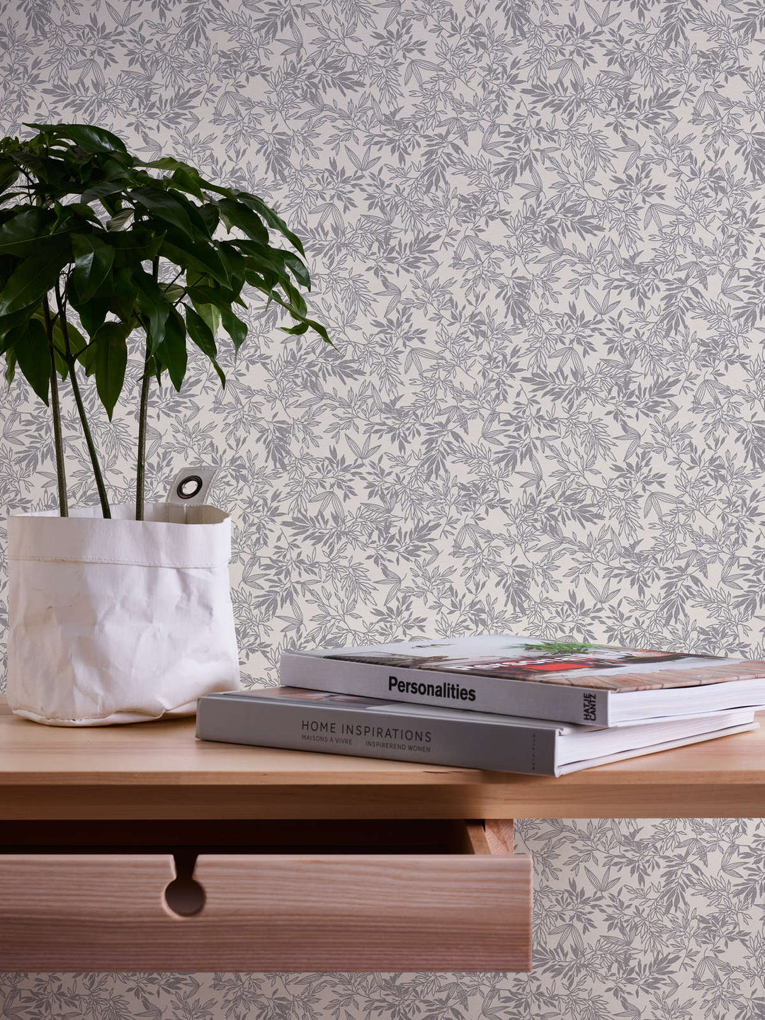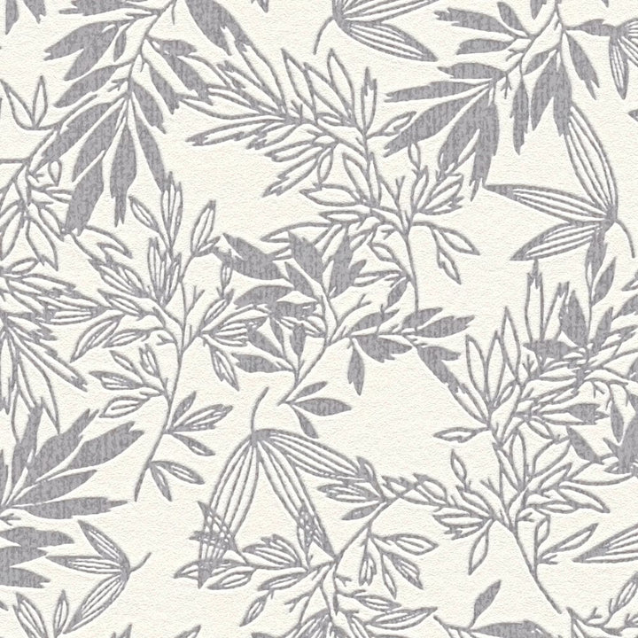 Matta tapetti lehtikuvio: harmaa, valkoinen - 1372211
