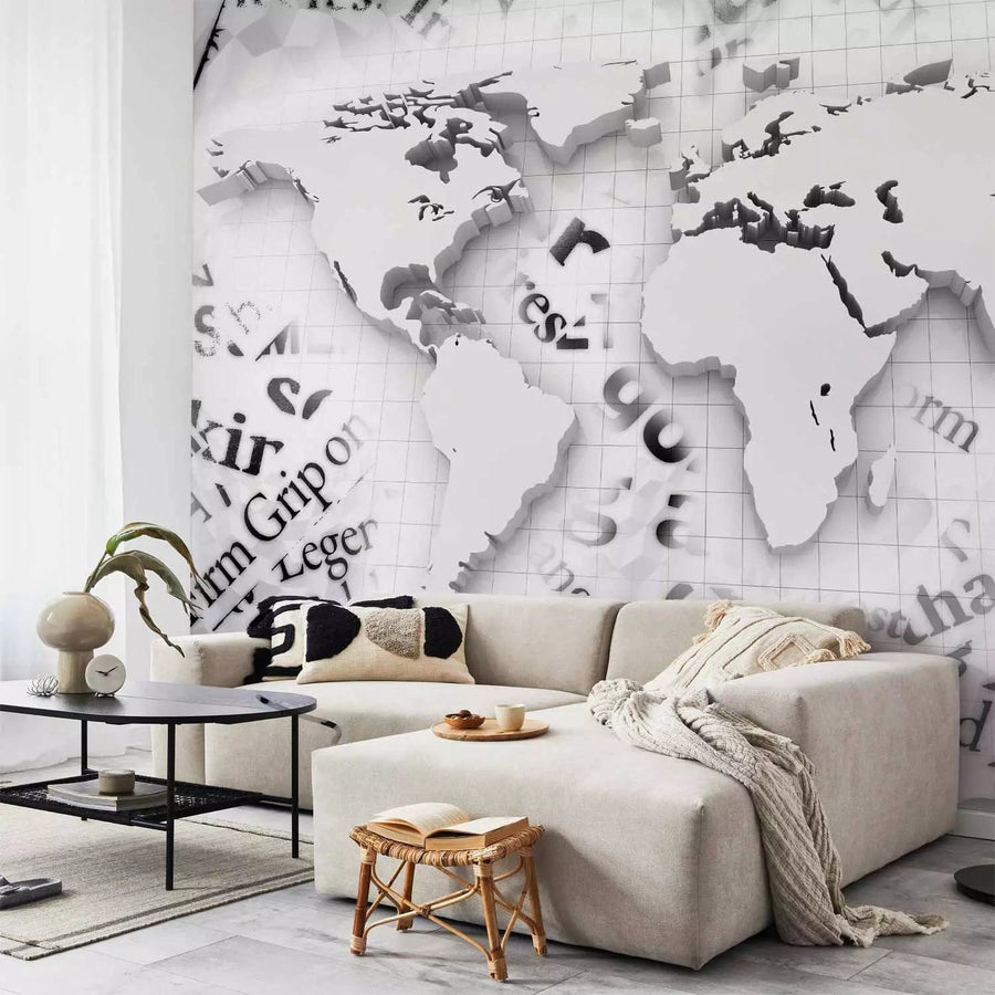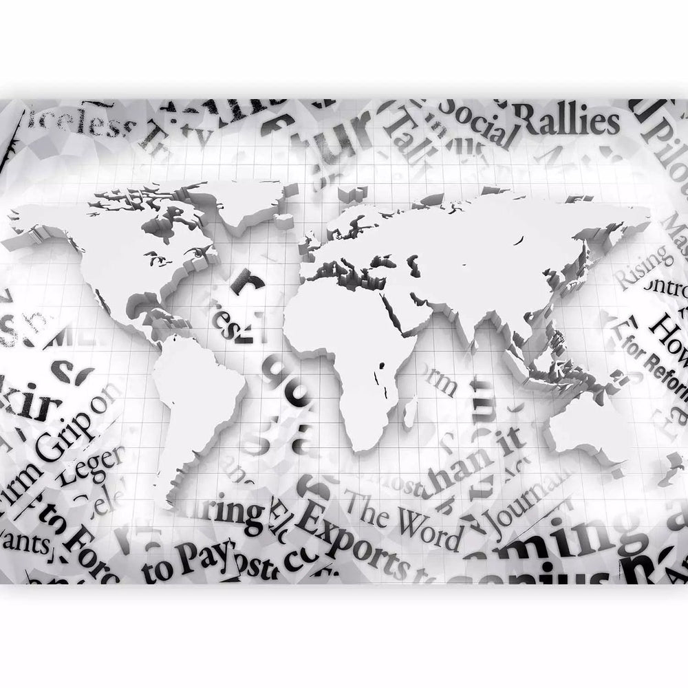 Fototapetes - Pasaules karte ar grafisku motīvu un tekstu, baltā G-ART