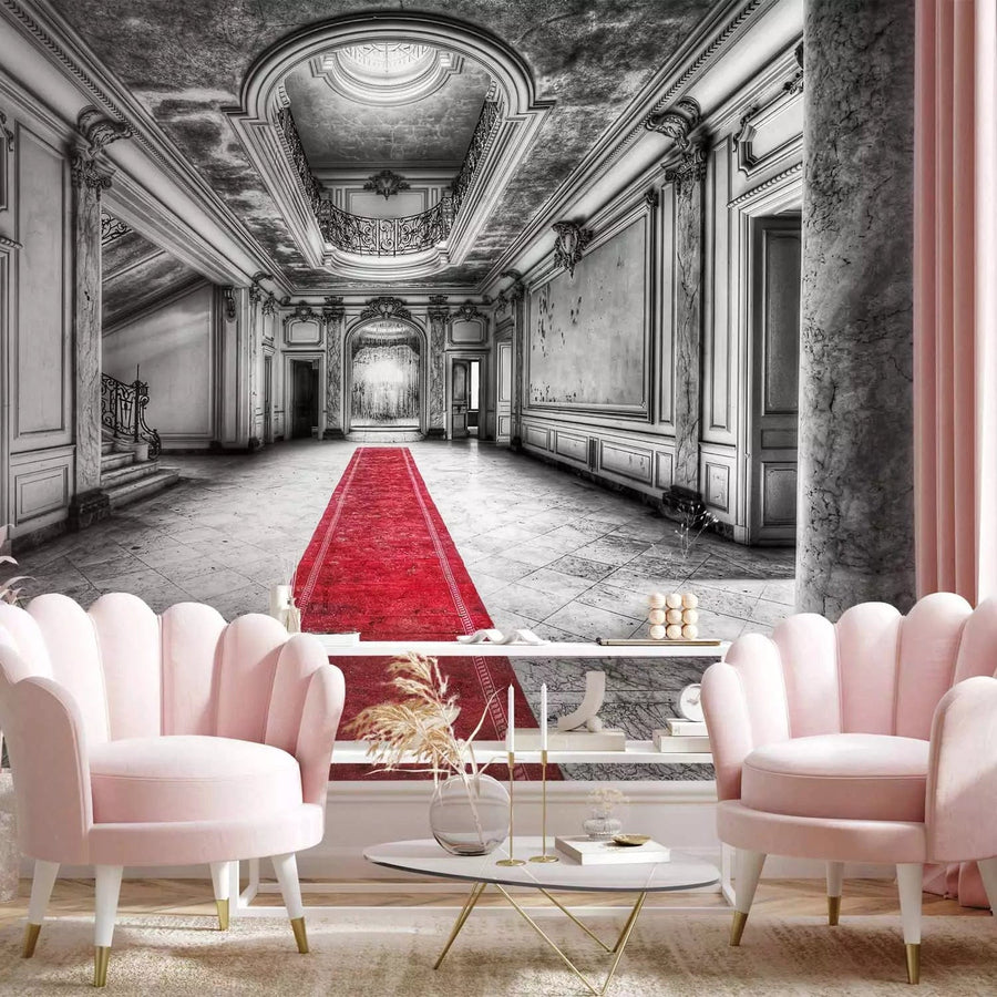 Mustavalkoinen Valokuvatapetti eteinen ja marmorilattia, 60207