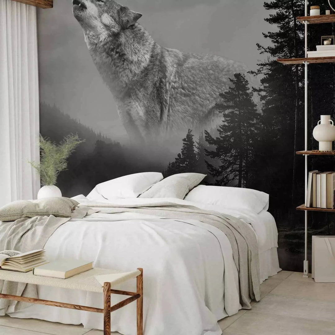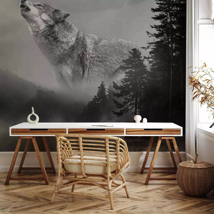 Valokuvatapetti suden kanssa harmaan sävyissä - Metsän salaisuudet, 135144