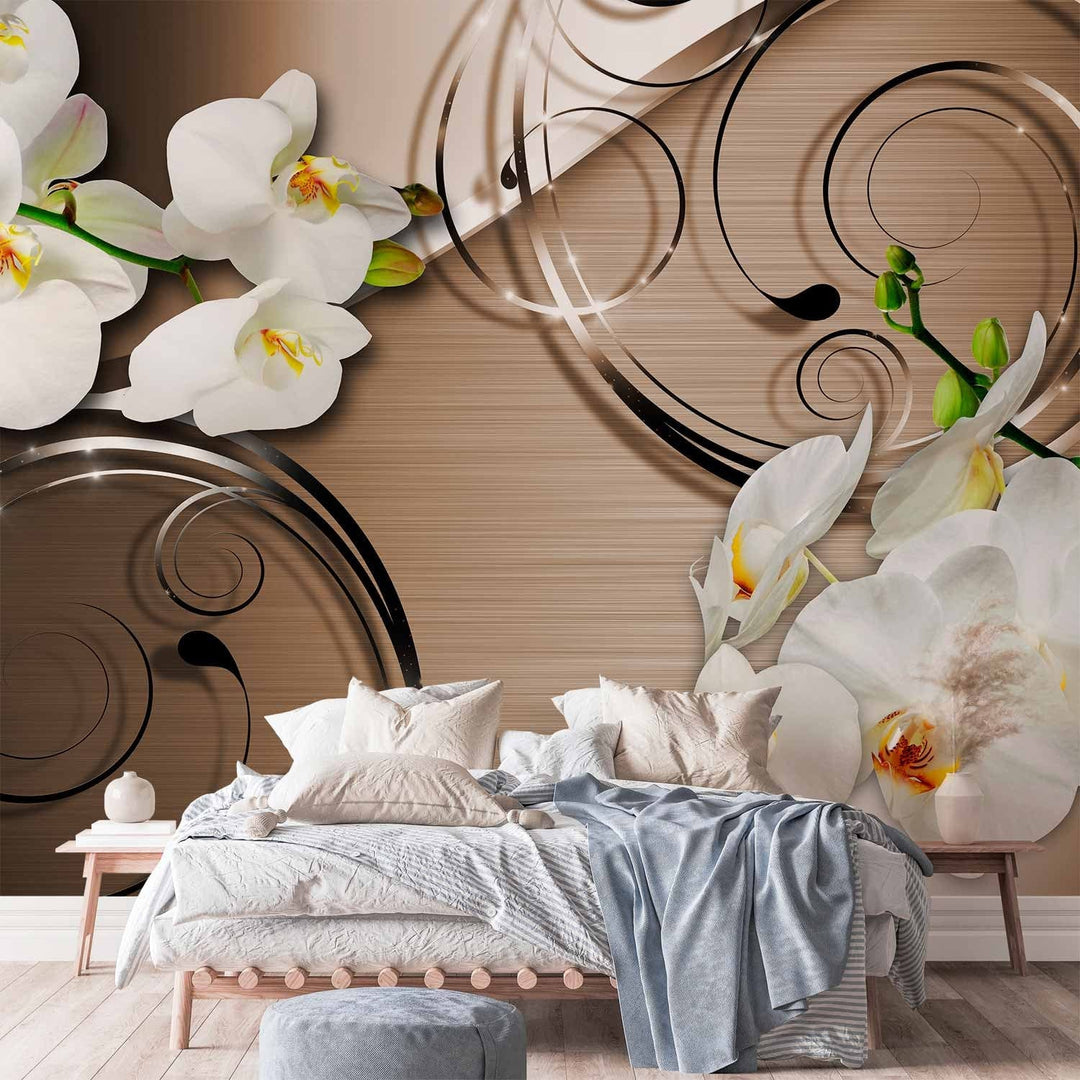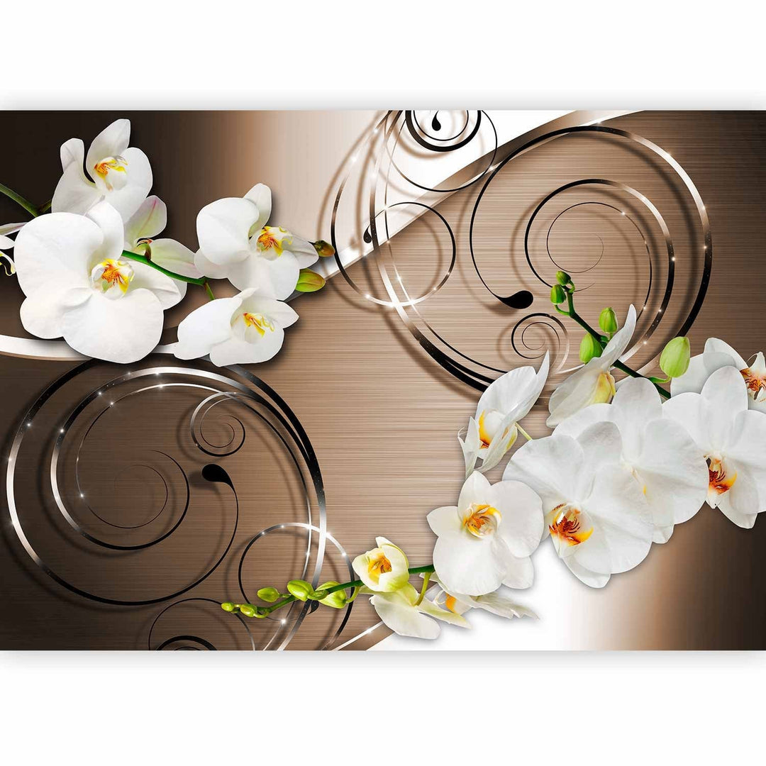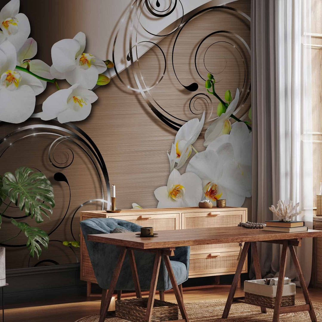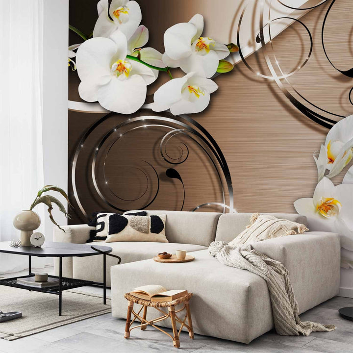 Valokuvatapetti valkoisia orkideoita ruskealla pohjalla - Trust, 59712