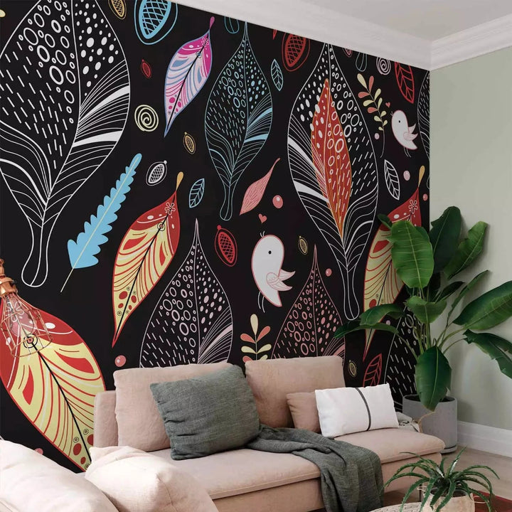 Valokuvatapetti 60445 Syksyn lehdet mustalla taustalla
