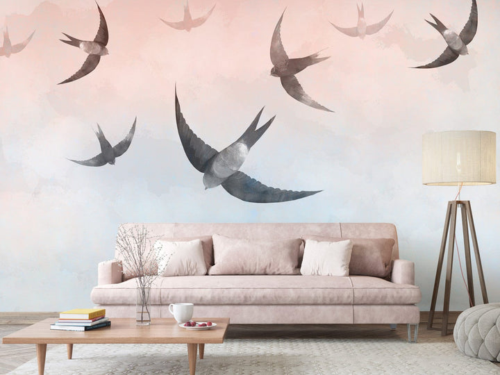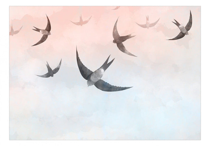 Valokuvatapetti lintujen kanssa - Satakieliä sinivaaleanpunaisella taivaalla, 143792