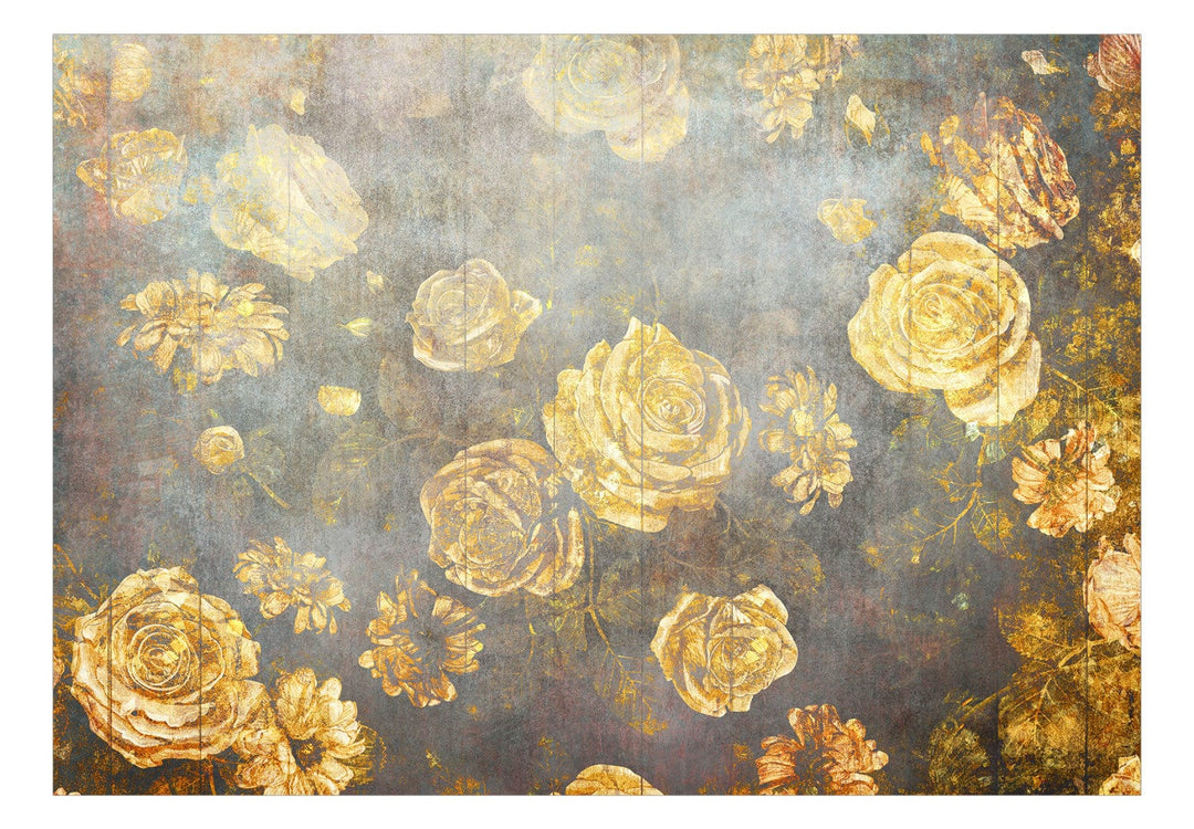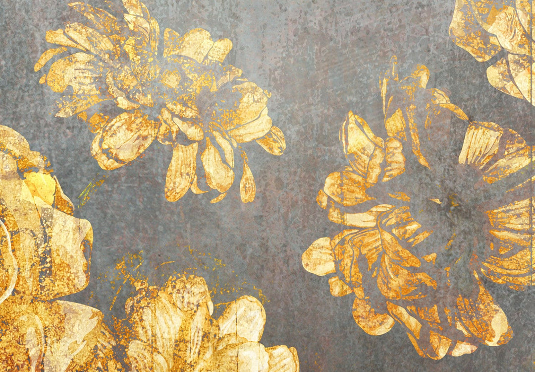 Valokuvatapetti vintage-kukkien kanssa - Sumuisia kukkia, keltainen, 143144