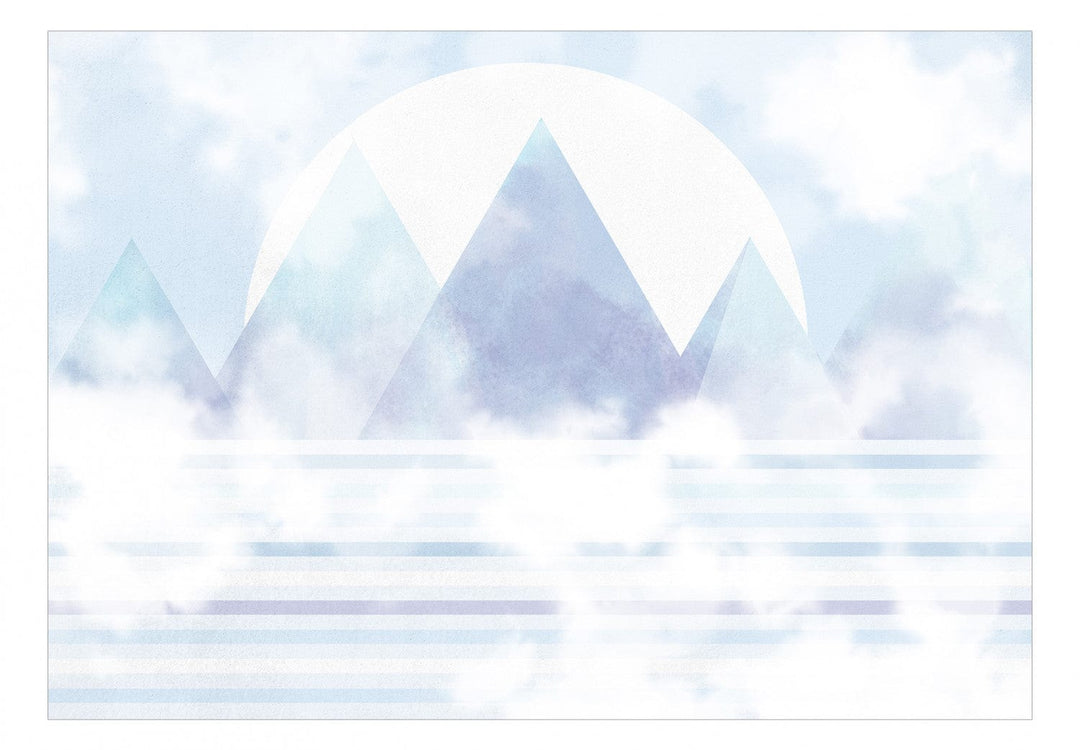Valokuvatapetti Vuoria järven rannalla auringonlaskun aikaan (sinisin sävyin), 143807
