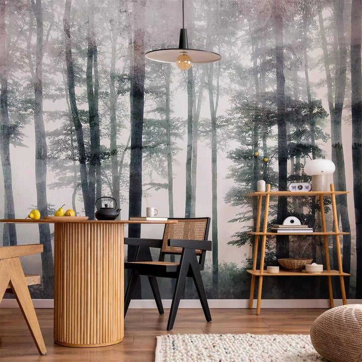 Valokuvatapetti metsän kanssa - Sumuinen metsä - vihreät sävyt - 137410