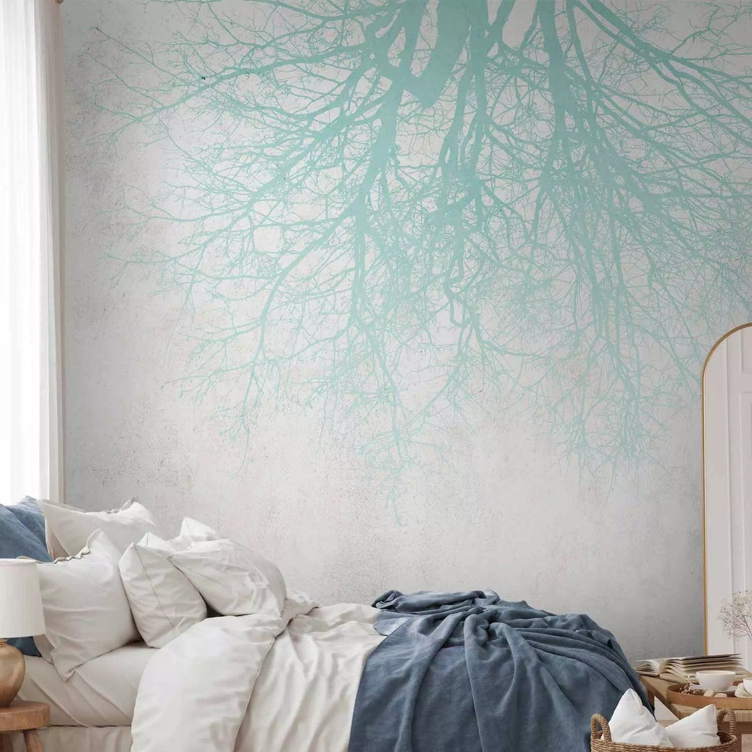 Valokuvatapetti - Turkoosit oksat vaalealla pohjalla, pehmeä rakenne, 148815