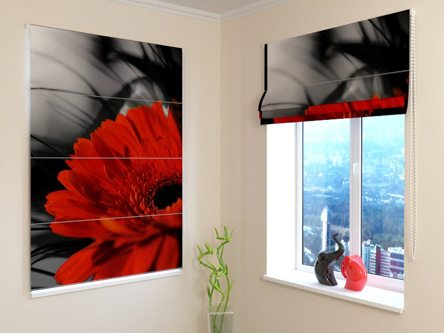 Žalūzijas ar ziedu rakstu - Sarkans zieds uz melna fona - cena Tapetenshop.lv