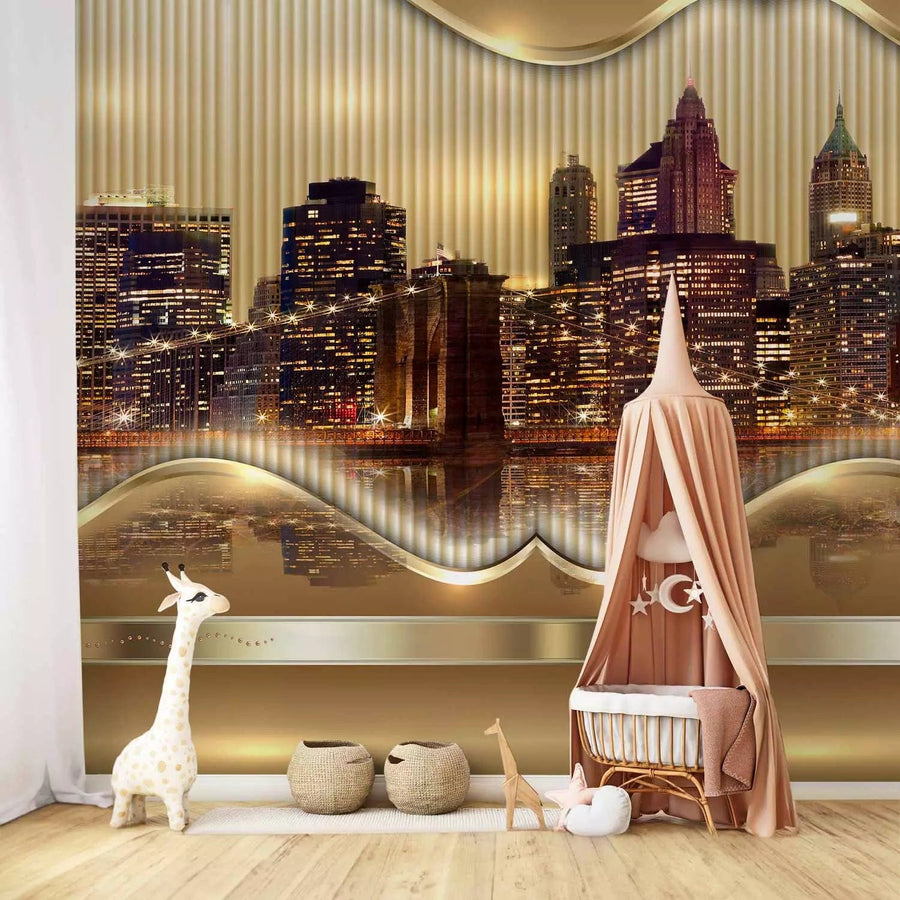 Fototapetes - Bruklinas tilts ar debesskrāpjiem un krāšņu atspulgu G-ART