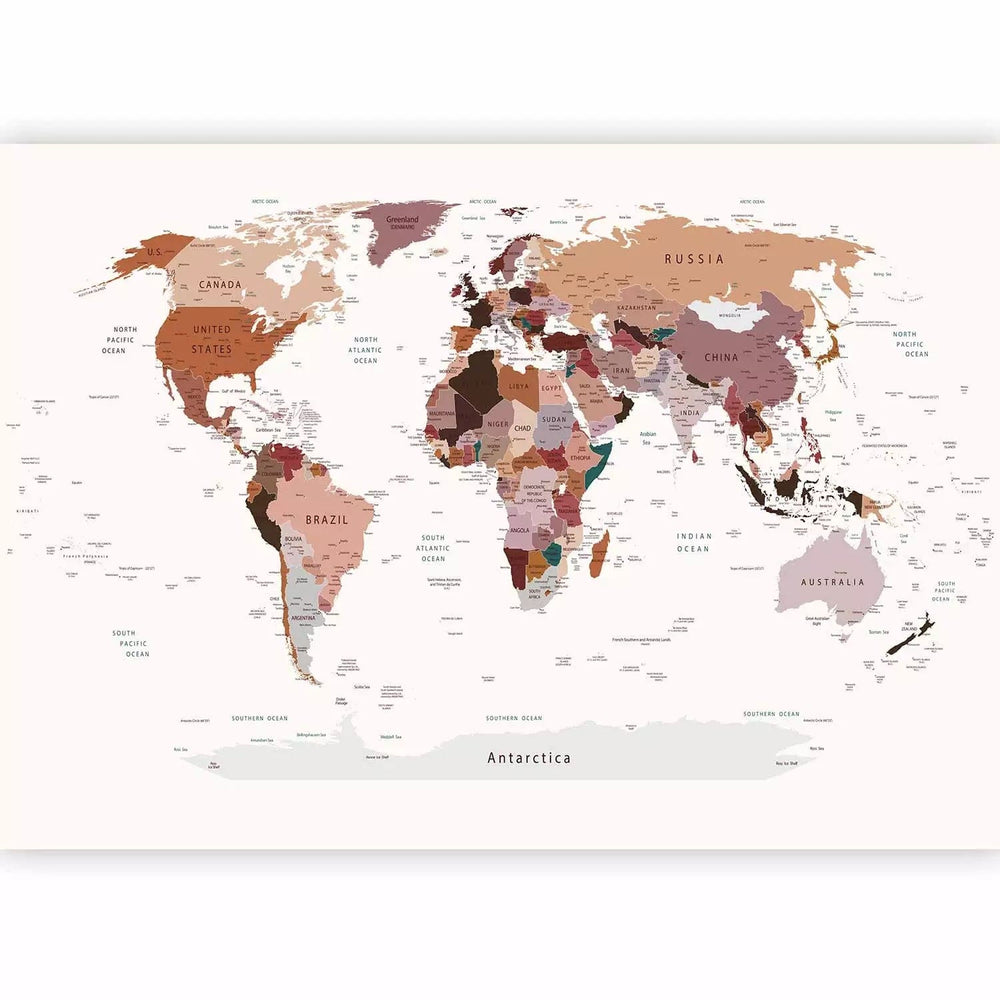 Fototapetes ar pasaules karti neitrālās krāsās angļu valodā, pirkt G-ART
