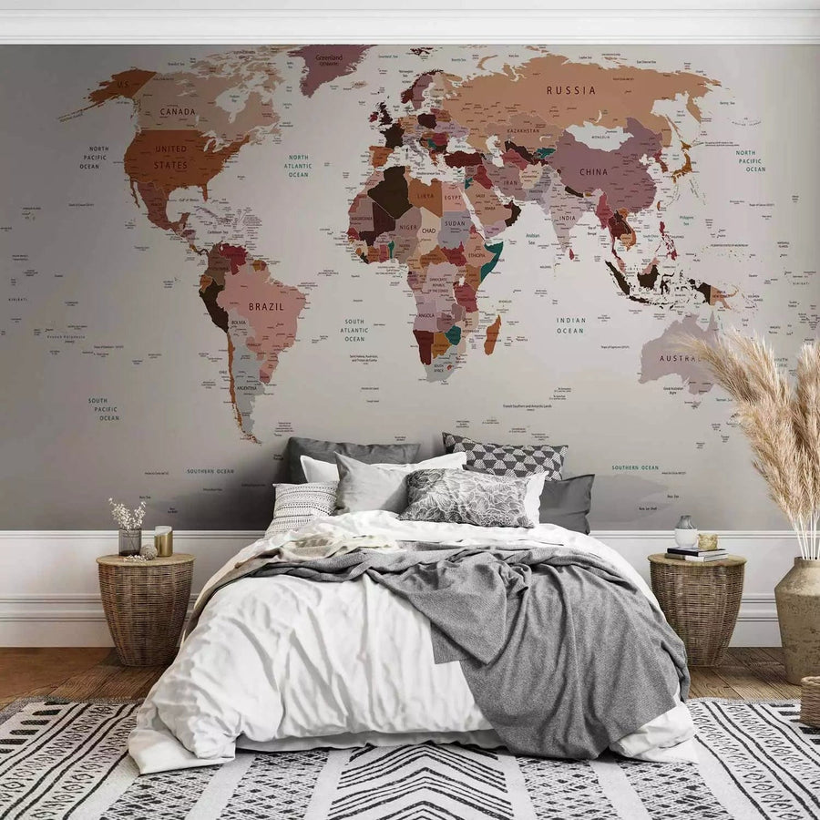 Valokuvatapetti maailmankartalla neutraaleilla väreillä englanniksi, 64360