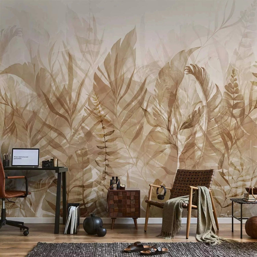Fototapetes - Lapu motīvs vara krāsā uz gaiša fona G-ART