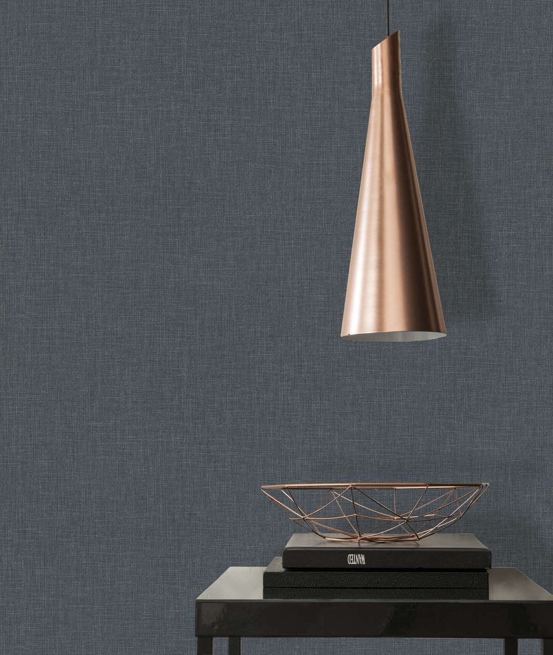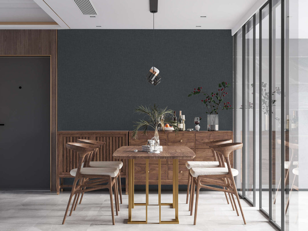 Yksivärinen tapetti tekstiilimäinen - musta, 1406354