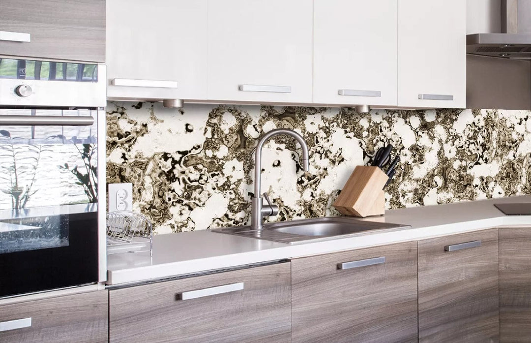 Uusimmat keittiön suunnittelutrendit keskittyvät itseliimautuviin valokuvatapetteihin keittiön backsplashissa. Keittiön takaseinän laatoittamisen sijaan se voidaan peittää kalvolla.