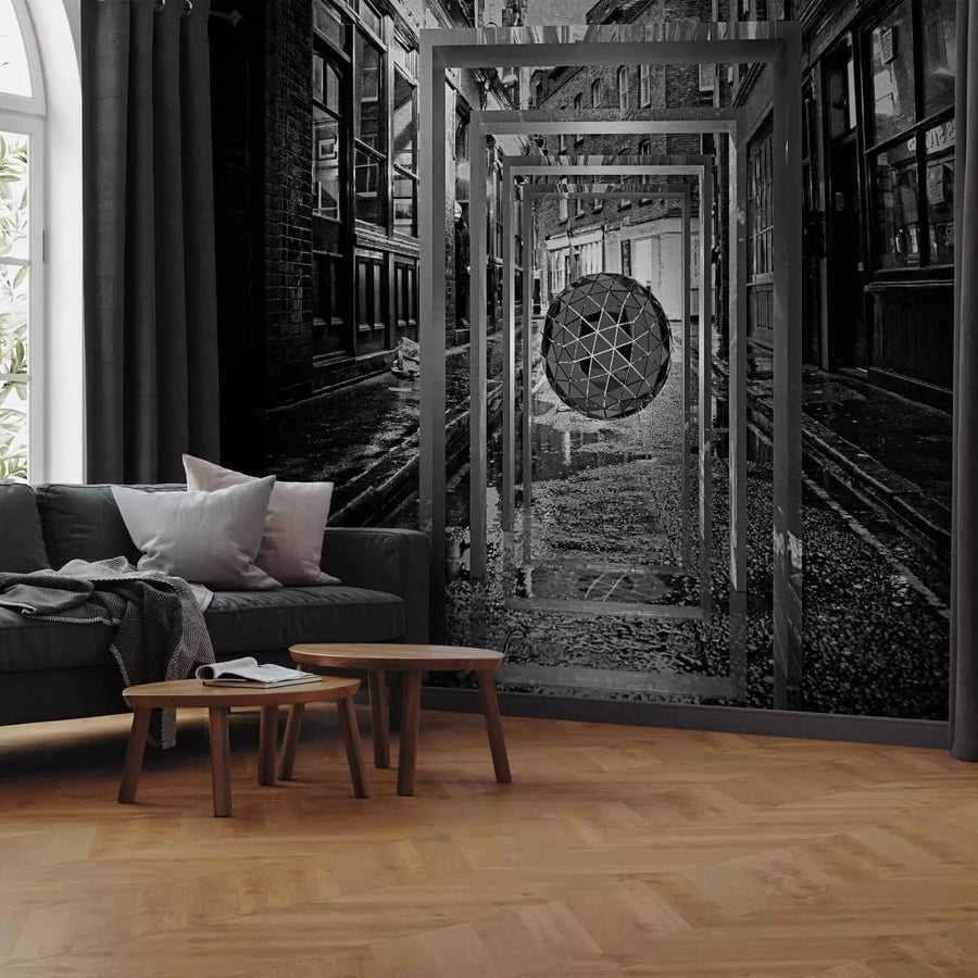 Valokuvatapetti - Mustavalkoinen fantasia arkkitehtuurilla ja 3D-efekteillä, 134664