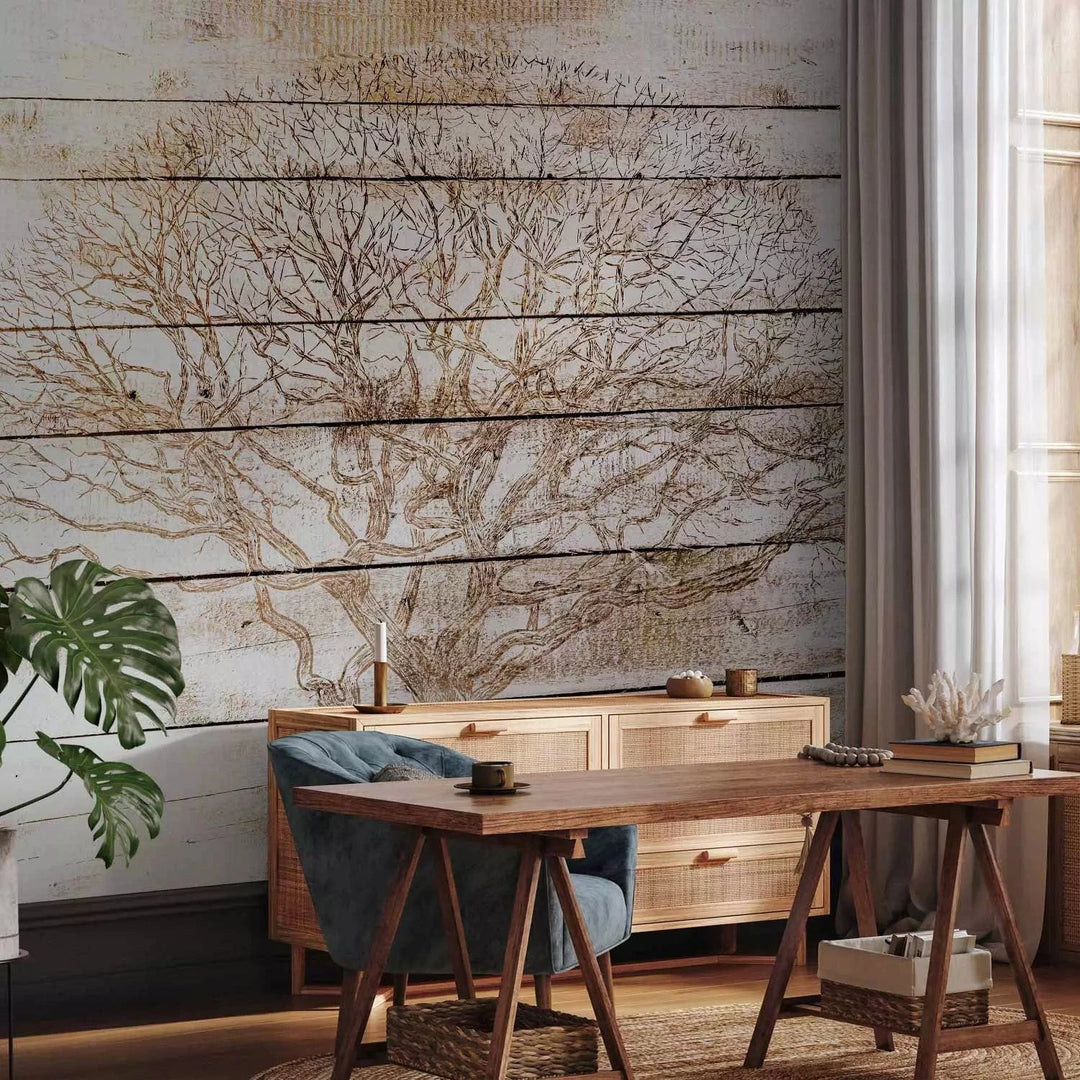 Valokuvatapetti Vintage - Puu lankuilla - 127810