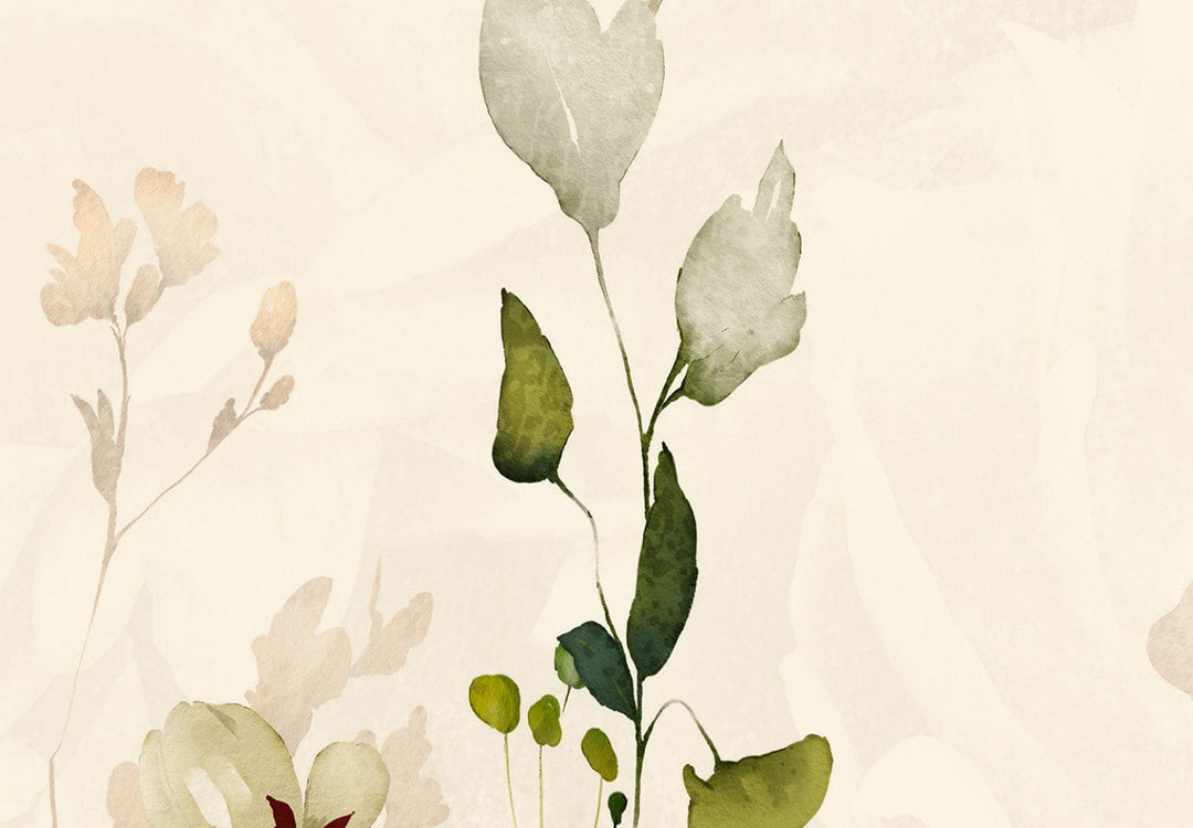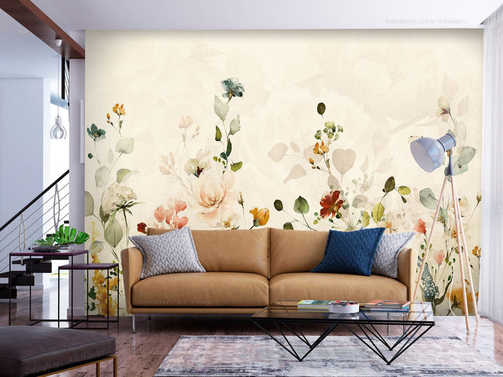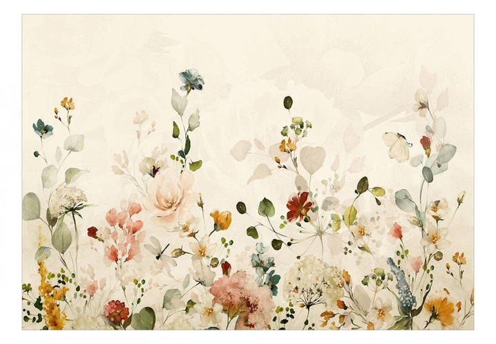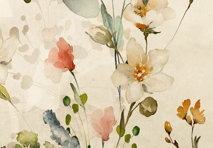 Valokuvatapetti - Niityn kukkia keltaisella taustalla, 142316