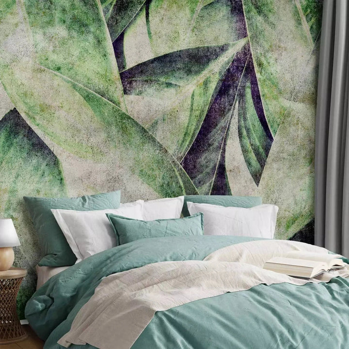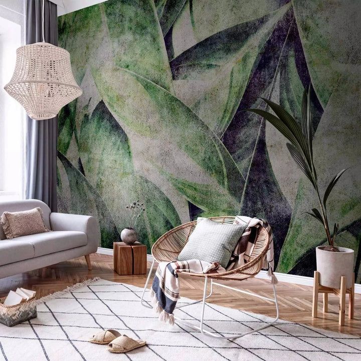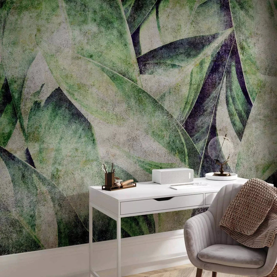 Valokuvatapetti - Eksoottiset lehdet – haalistuneella kuviolla varustettu lehtiaihe, 135093