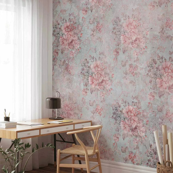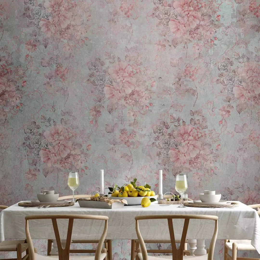 Valokuvatapetti - retro kukkakuvio vaaleanpunainen - 142705