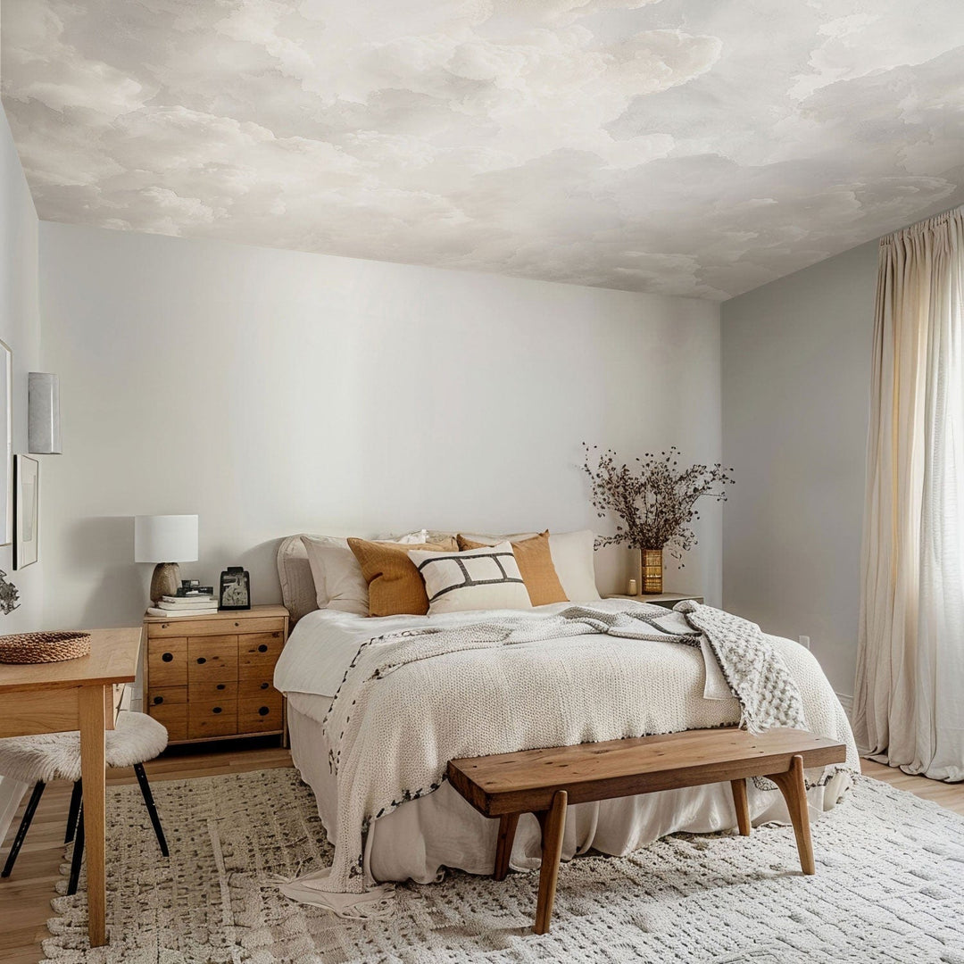Valokuvatapetti katto, jossa pilvet vaaleissa sävyissä, 159914