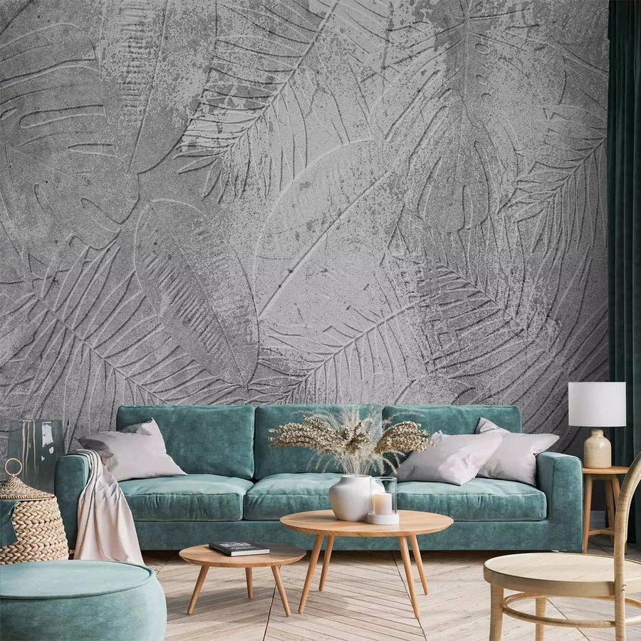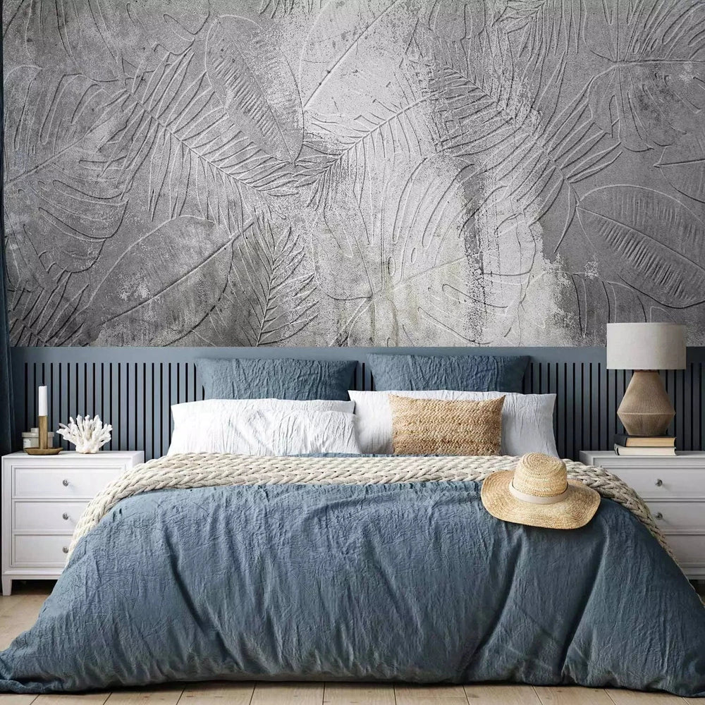 Fototapetes - Dabas hieroglifi, abstrakta tekstūra ar melnbaltam lapām G-ART