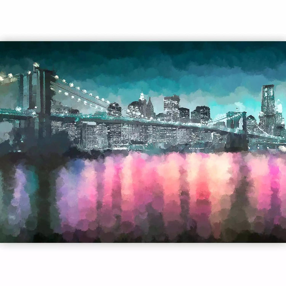 Fototapetes - Gleznotā Ņujorka - nakts arhitektūra uz tilta fona G-ART