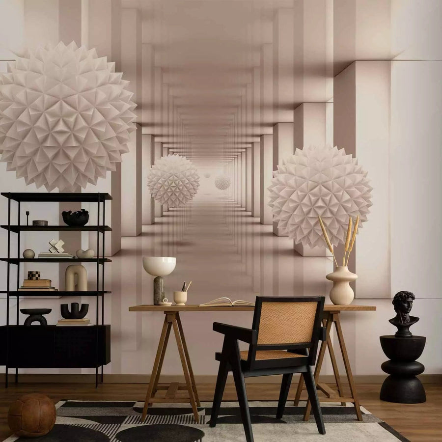 Fototapetes - smilškrāsas kolonnas un levitējošs koks koridorā, 63817  G-ART
