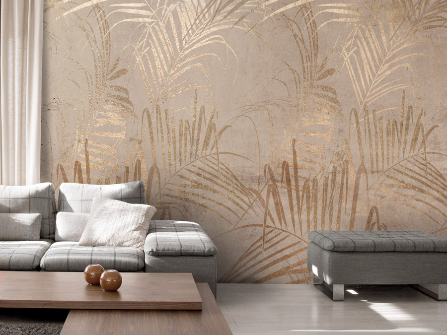 Fototapetes- Palmu krasts - bēša kompozīcija ar lapām - 142716 G-ART