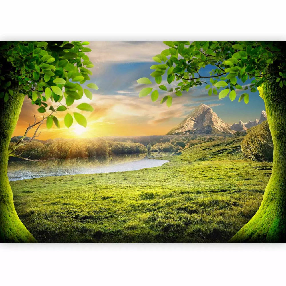 Fototapetes - ainava ar ezeru, mežu un kalniem saules gaismā, 59736  G-ART