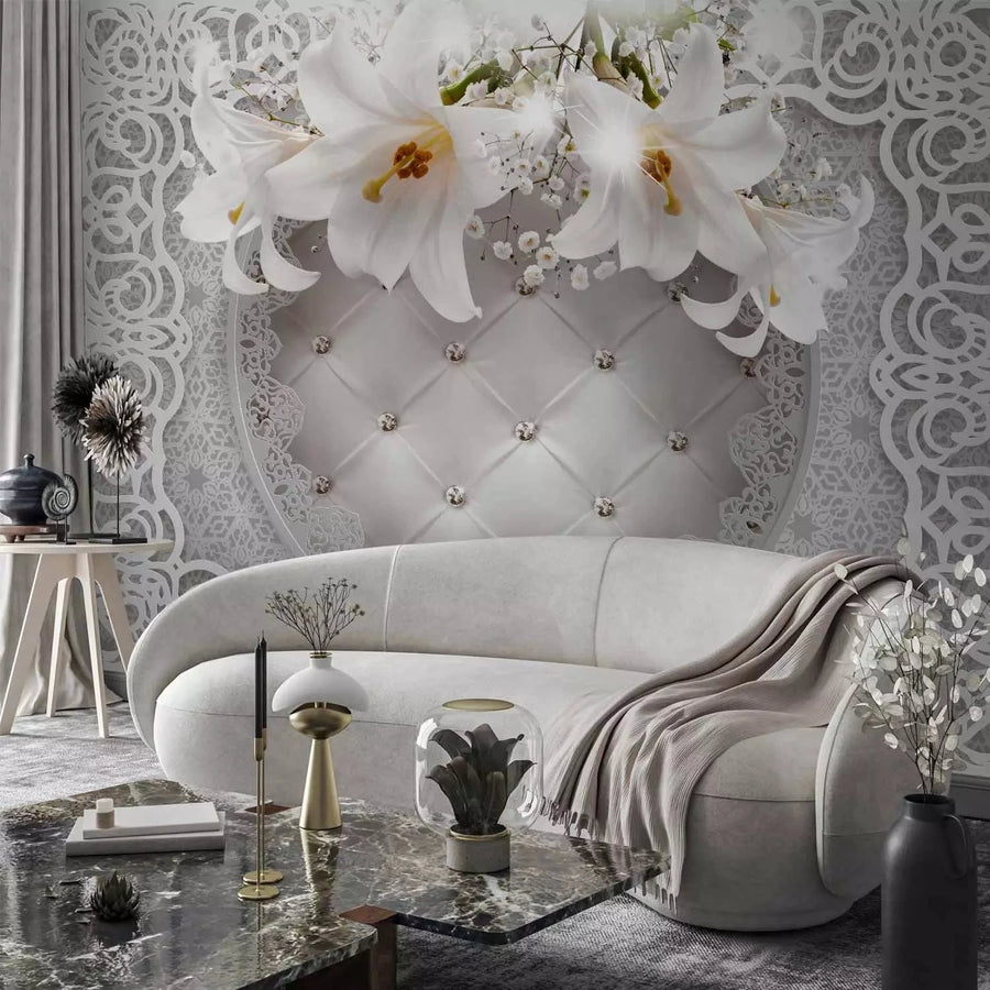 Valokuvatapetti valkoisia liljoja tyylikkäällä taustalla, 108096