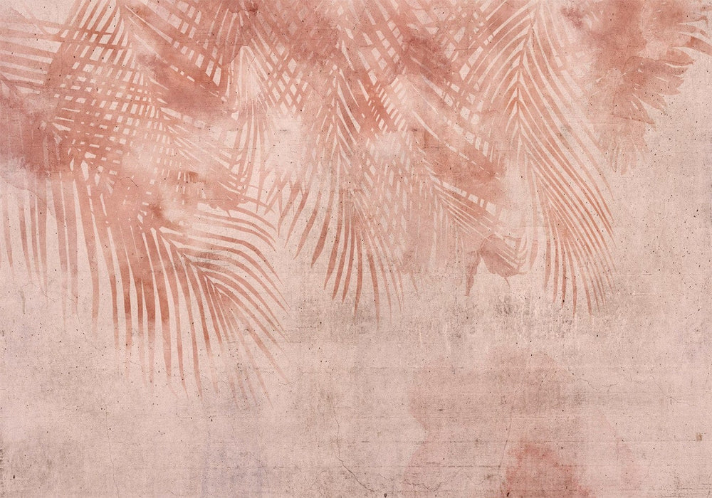 Fototapetes - Rozā palmas - minimalistisks tropu motīvs ar lapām G-ART