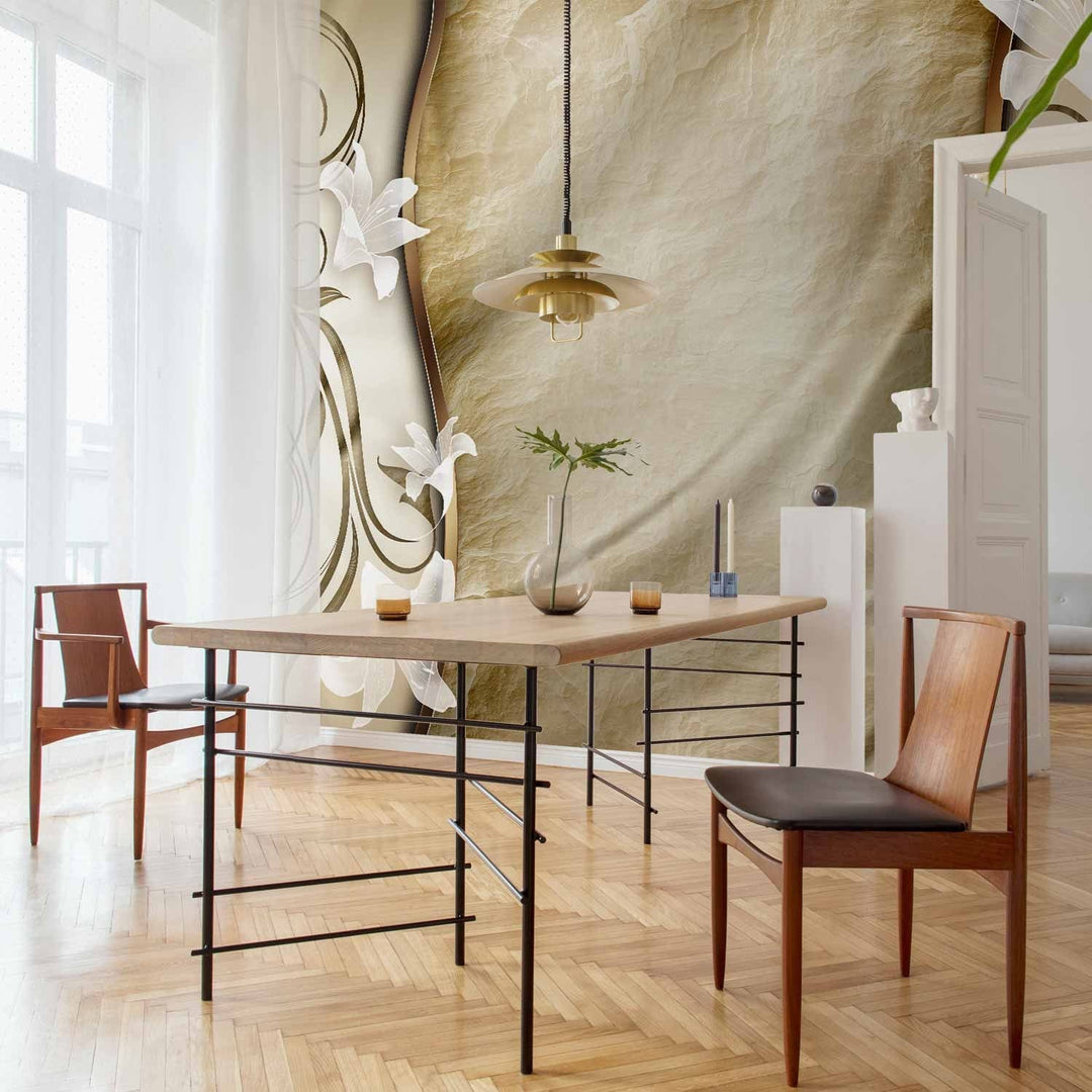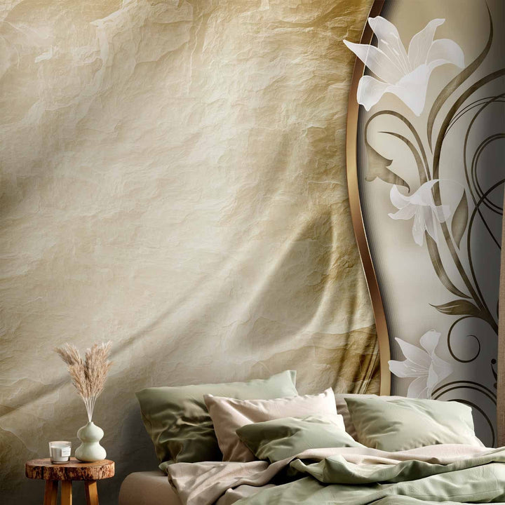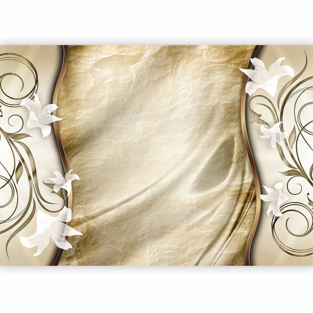 Valokuvatapetti valkoisia kukkia beigellä abstraktilla taustalla - Medus, 60130