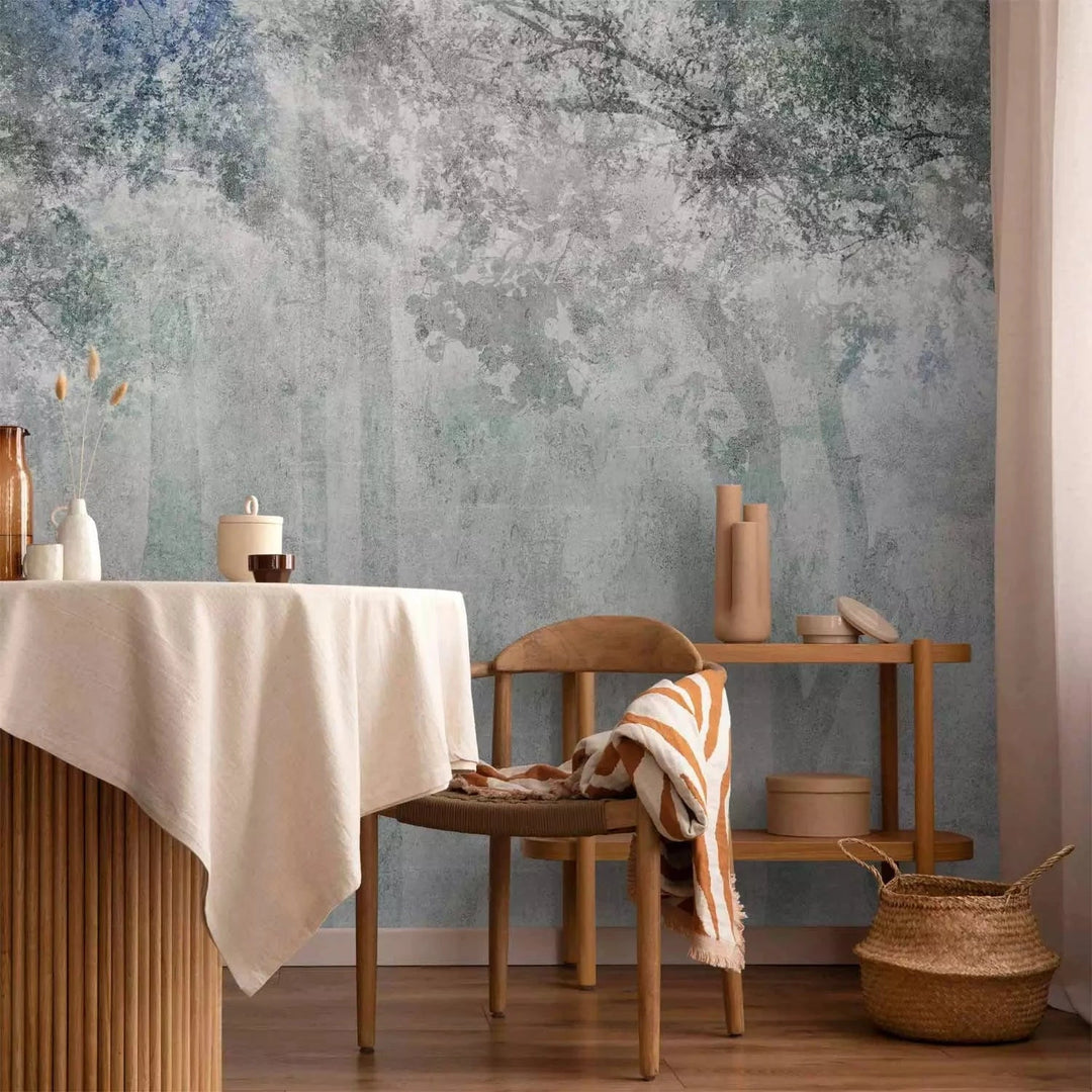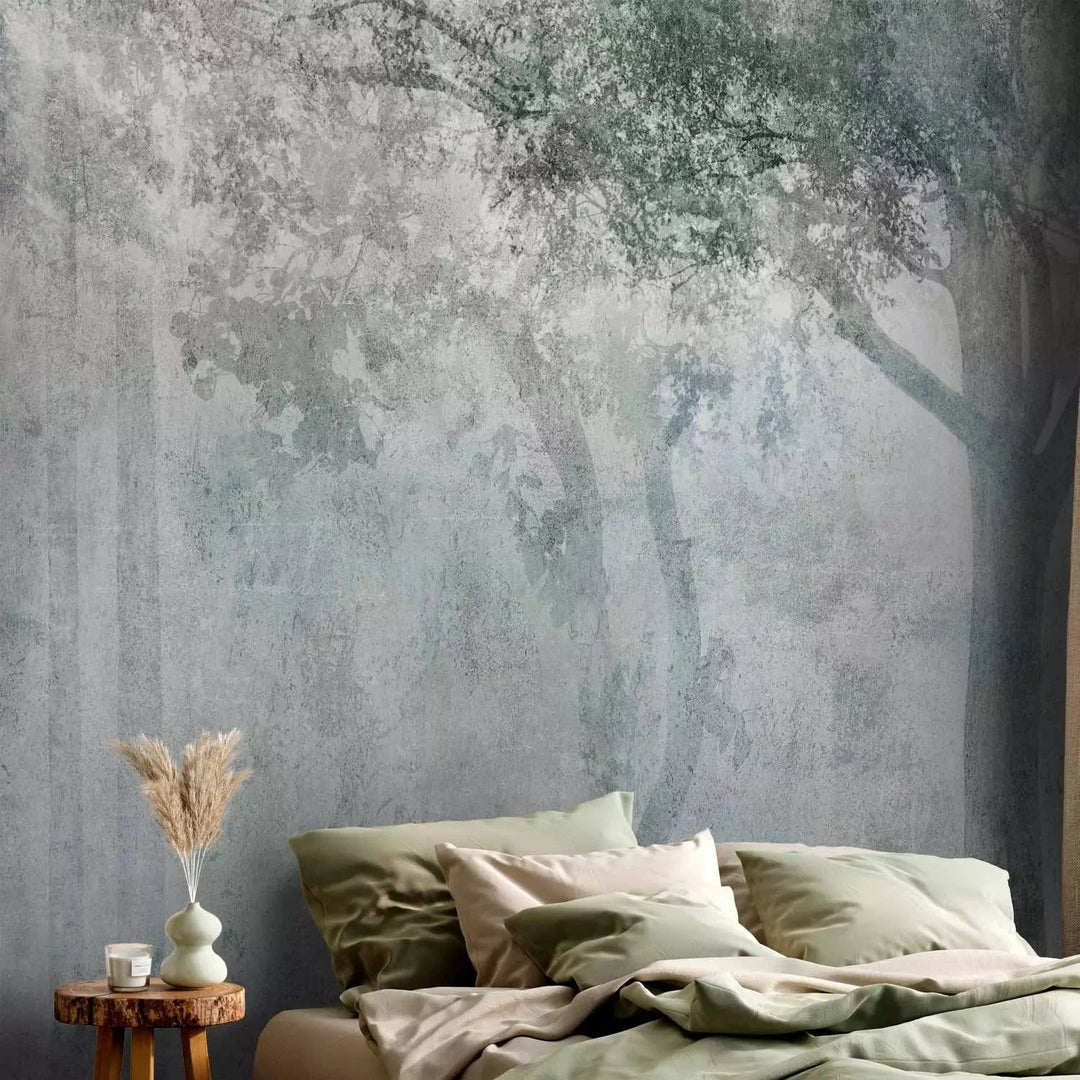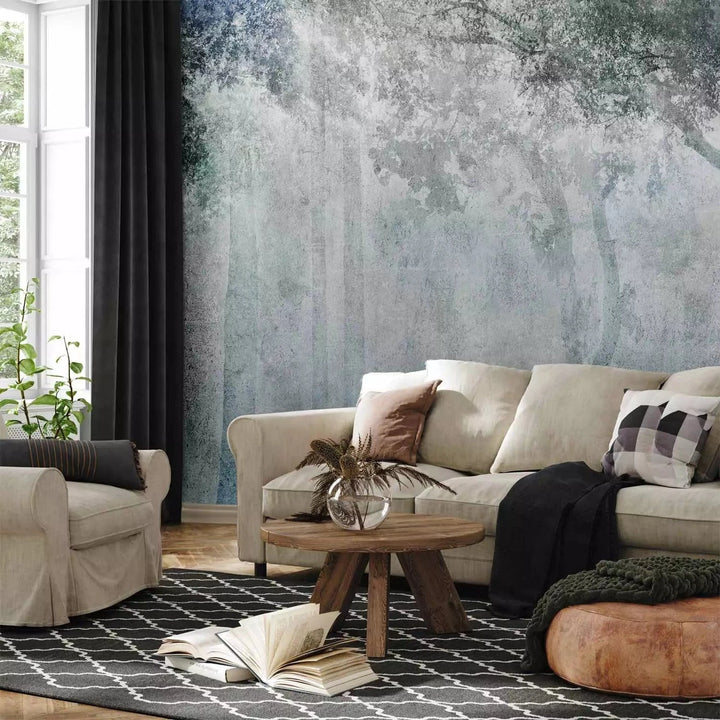 Valokuvatapetti vaaleanharmaan ja vihreän sävyinen metsä - 131902