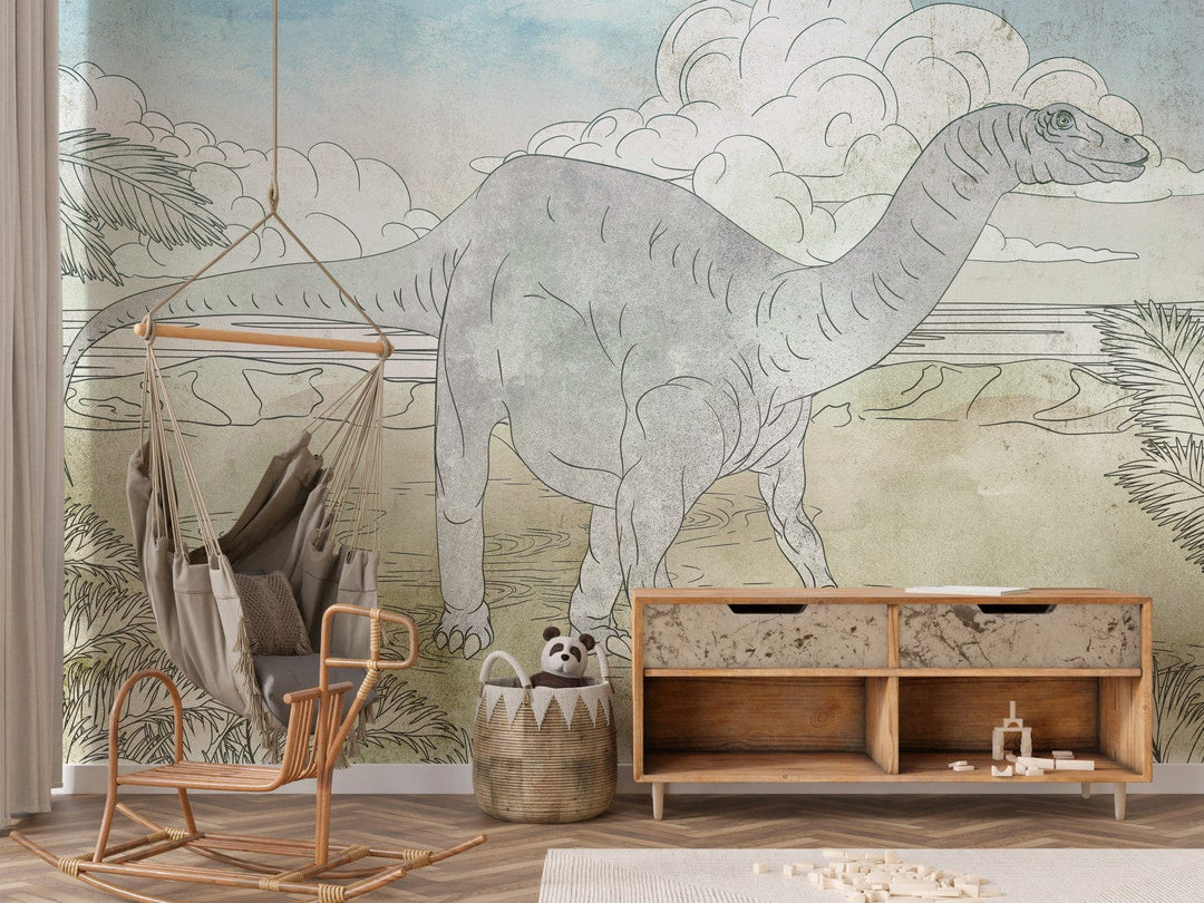 Valokuvatapetti - Käsin piirretty dinosaurus pastelliväreissä, 149237