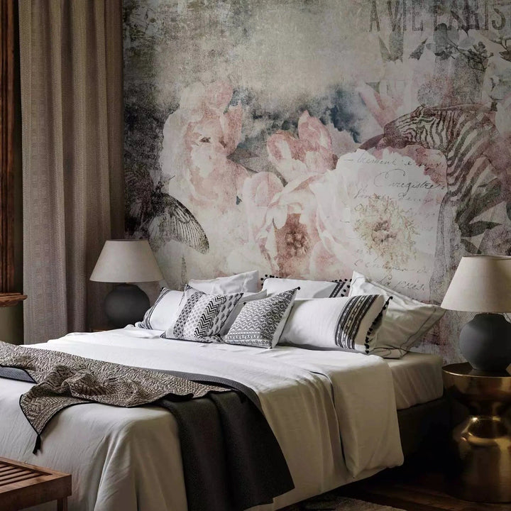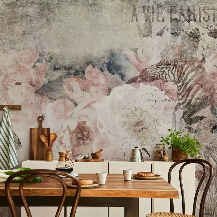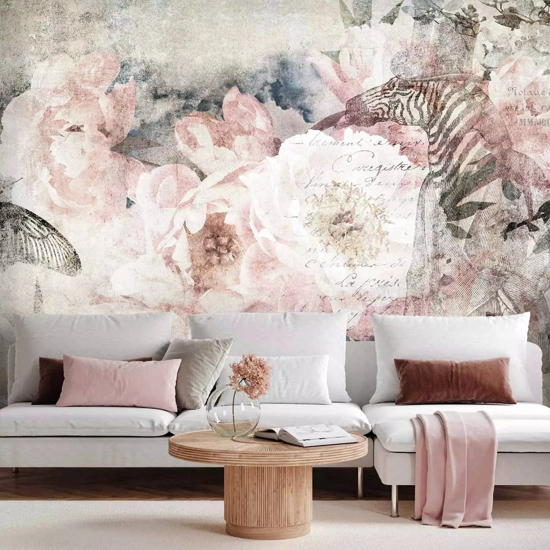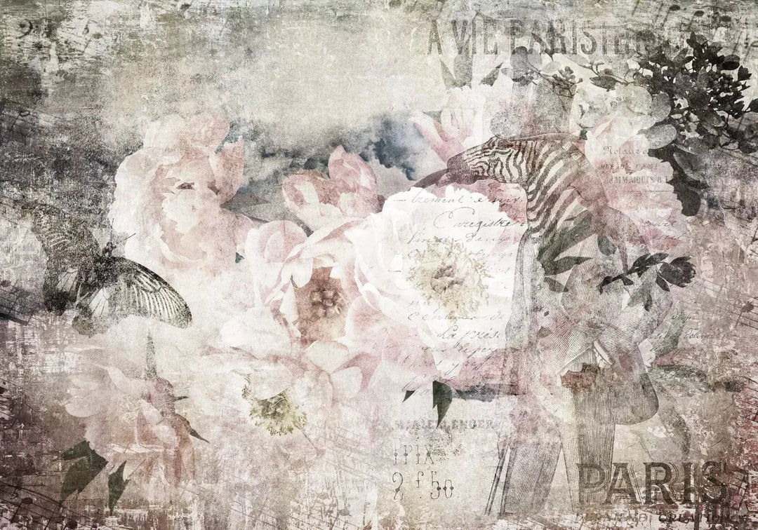 Valokuvatapetti - Abstrakti kuvio kukkia vintage-tyyliin - 136501