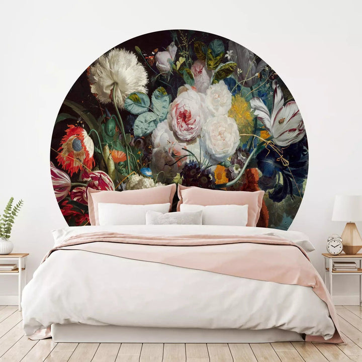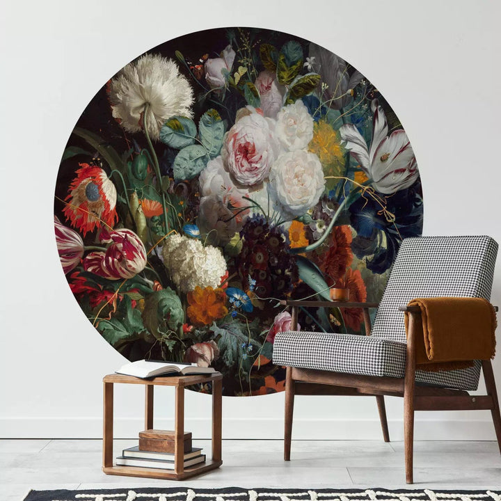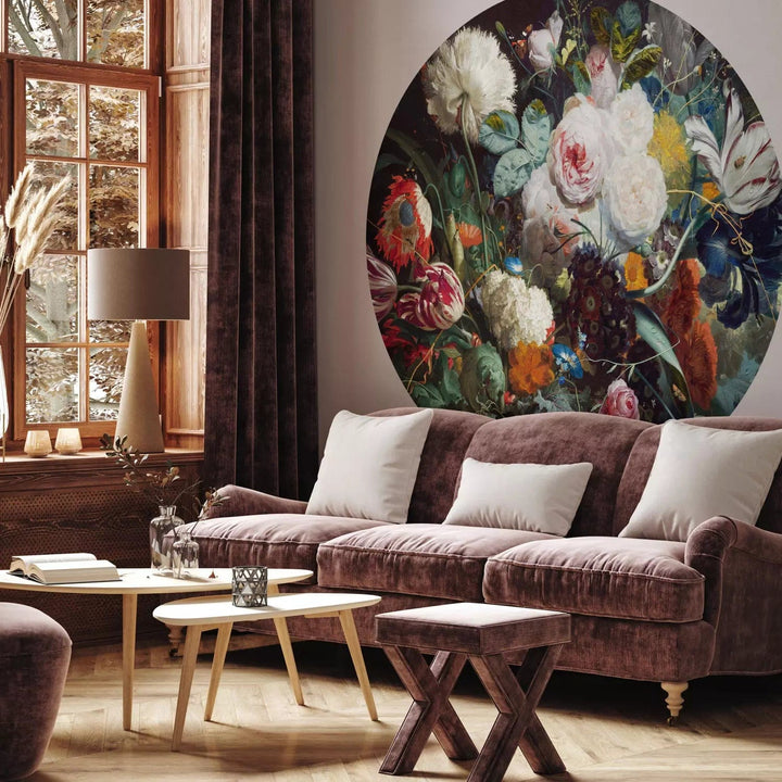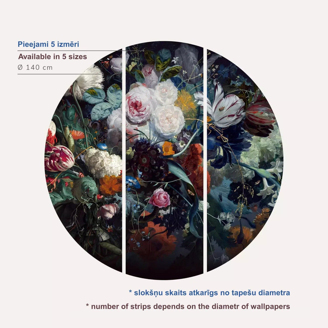 Itseliimautuva pyöreä Valokuvatapetti - Barokkitupsu tummalla pohjalla, 148909