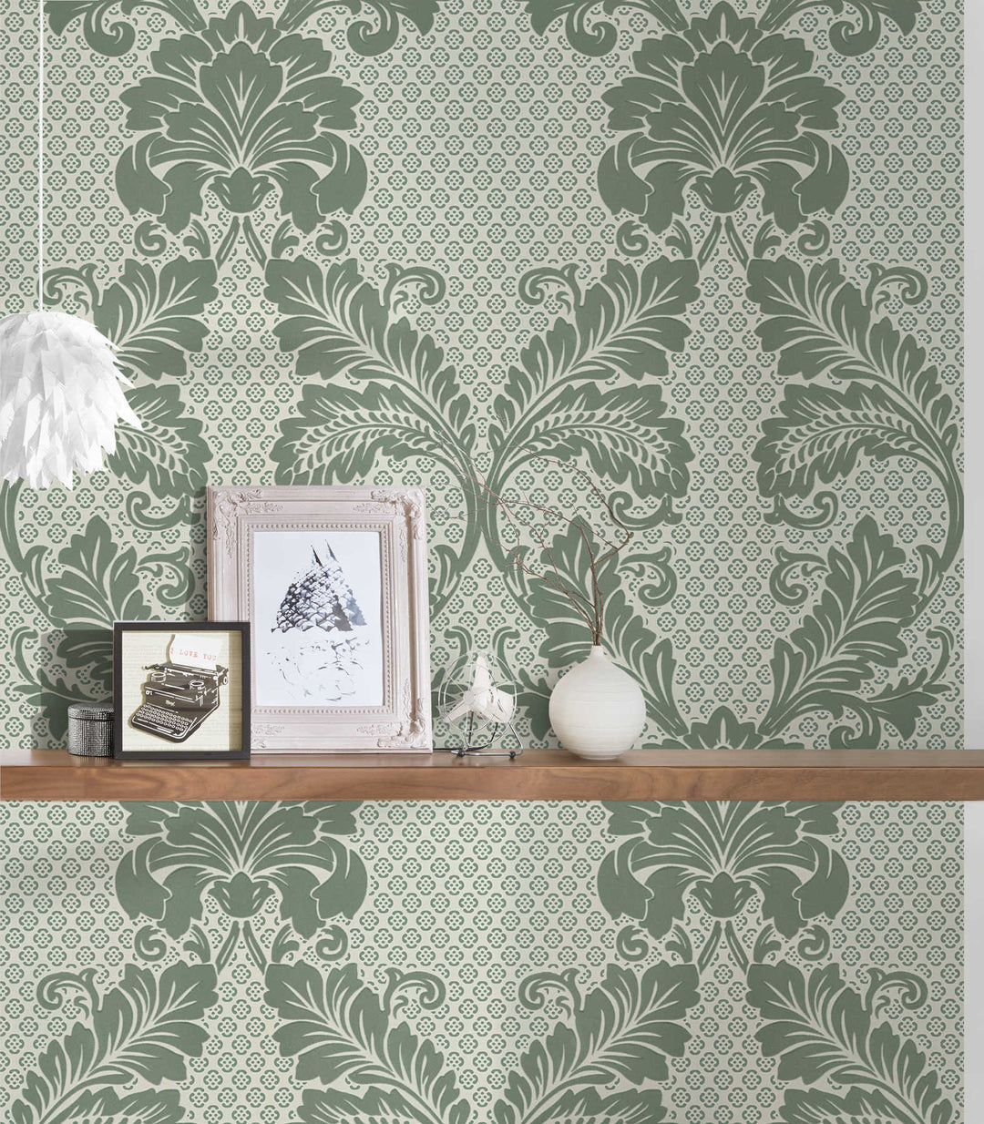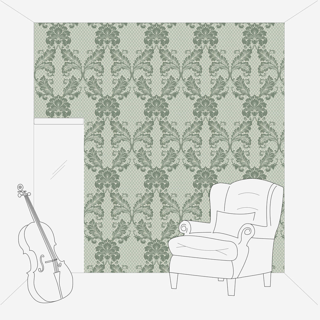 FLOCK Tapetit Damaskuskuvioinen - vihreä
